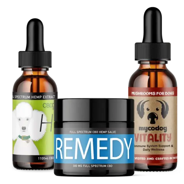 Support your dog’s skin, immune system, and overall vitality with this powerful trio of full-spectrum CBD and mushroom extract formulas. HEAL promotes immune balance and cellular function, REMEDY offers targeted topical care for sensitive skin areas, lumps and bumps, and Vitality provides adaptogenic mushroom support for daily resilience and well-being.